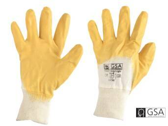 Handschuhe mit sehr hoher Griffigkeit und Nitril-Beschichtung. Die flüssigkeitsabweisende Nitril-Beschichtung stößt Öl, Fett und Staub ab. Der offene Baumwollrücken der Handschuhe bietet zusätzliche Belüftung. Größen: 9 / 10, 7 cm breite Sicherheitsstulpe.
