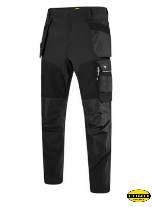 Performancehose aus Stretch-Nylon-Polyester, hergestellt aus 54 % Polyamid, 39 % Polyester, 7 % Elasthan.