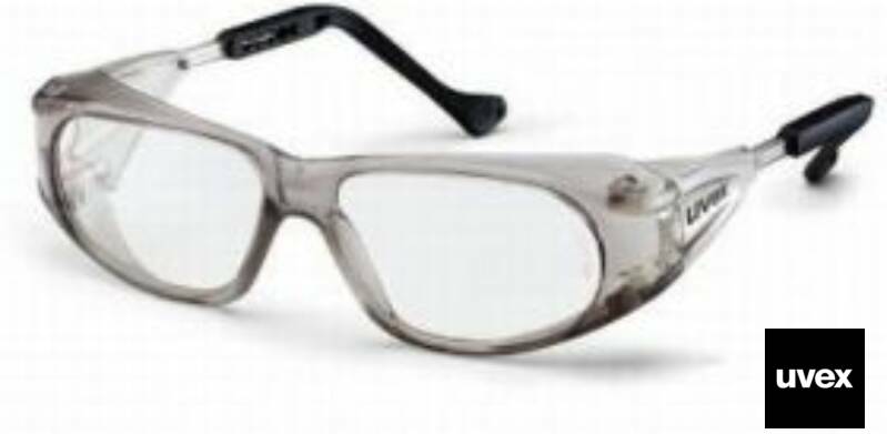 Comfortable duo-lens safety glasses, fit tightly against brow and cheek. Transparent grey. Fitted with clear polycarbonate lens: all Uvex PC lenses provide 100% protection against harmful UV radiation up to 400 nanometres (unique in safety – standard in sports), this is achieved by means of the filter material that is added to the (polycarbonate) raw material. With Supravision Sapphire coating coating: extremely scratch resistant, chemical resistant and easy to clean.