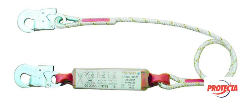 Safety line 1.5 metre made of kernmantle rope with integrated shock-absorber Serves as connection between anchor point and harness.