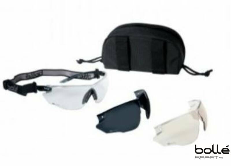 Set of ballistic spectacles. Case is supplied with 3 PC lenses: clear, smoke and CSP. Srtap is also supplied inside the case. Lenses have a PLATINUM coating: anti-scratch and anti-fog on both sides.
