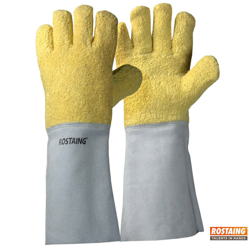 High-quality, heat-proof glove in para-aramid and cowhide leather. Wool lining, cuff length 15 cm. Suitable for contact heat up to 500°C for 15 sec.