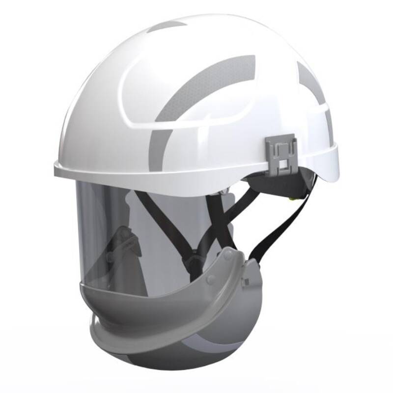 Safety helmet with micro peak and integrated arc visor (class 2), made of strong ABS for improved low temperature (-40°) and side impact protection. The transparent, gray face shield provides improved optical properties. With a very high VLT (Visible Light Transmission) value of <(><<)>50%. With 4-point textile suspension (53-63 cm), sweatband and chinstrap. Adjustment is made quickly and easily with convenient Twist2fit-ratchet. With European 30 mm slot for attachment of hearing and face protection. ATPV: 36cal/cm². Colours: white, yellow, red and blue.