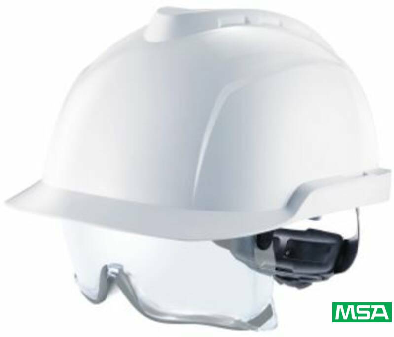 Casque de protection avec visière intégrée en ABS. Avec 6-points à l'intérieur 'Fas-Trac' en textile (52-63cm), avec bouton pivotant et bandeau très absorbant en mousse. Avec encoche européenne de 30mm pour combiner protection auditive. Couleurs: blanc, jaune, rouge, vert, bleu, orange.