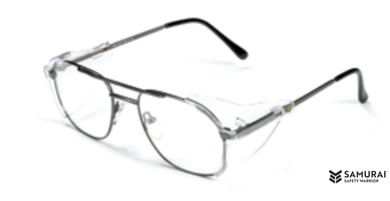 Lunettes de sécurité en métal gris foncé avec verres en polycarbonate , protection contre les chocs et la poussière. Équipé d'une couche anti-rayures et d'un revêtement anti-buée. La protection latérale en polycarbonate transparent et rivetée. Étui assorti séparé disponible. Convient pour : travaux mécaniques légers ou moyens et applications de laboratoire. Conforme à : EN 166.