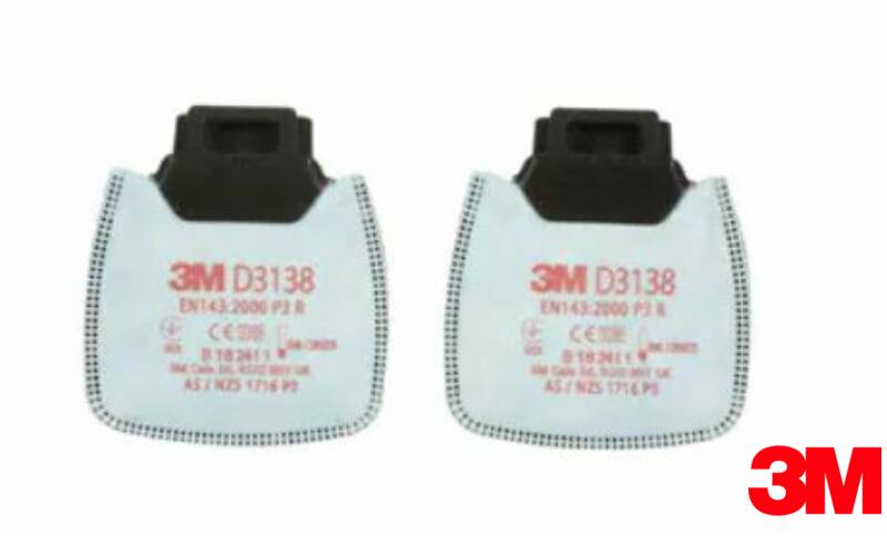 Filtre P3 pour demi-masques 3M Secure Click. Protège contre les poussières toxiques, les particules de brouillard et de fumée, l'ozone et les niveaux d'odeurs gênantes (pas plus élevés que la valeur limite légale au travail) des gaz et vapeurs organiques et des gaz acides.