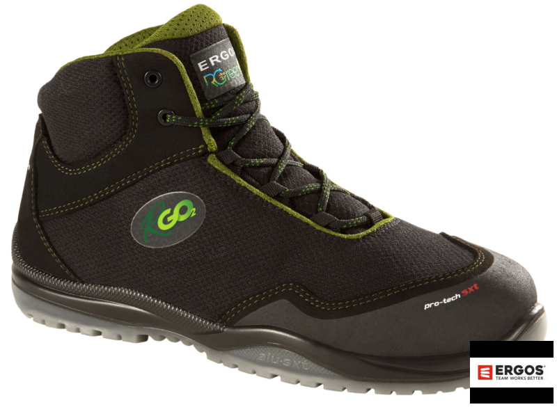 Tige hydrofuge, très résistante et respirante en textile fabriqué à base de fibres issues de matières recyclées. Modèle éco-conçu. Avec sur-embout antiabrasion pro-tech SXT. Première de propreté en matières recyclées anatomique à mémoire de forme, très respirante. Compatible avec les semelles Arch Support. Embout de sécurité en aluminium 200 J. Insert antiperforation composite. Semelle PU2D ESD, spéciale antiglisse.