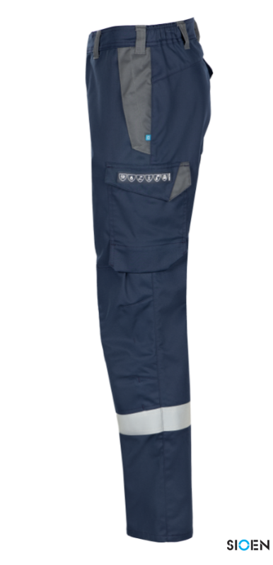 Pantalon de travail résistant Multinorm UP avec bandes rétro-réfléchissantes ignifuges à double piqûre et poches genouillères réglables en deux hauteur. Ce pantalon de travail antistatique protège parfaitement le porteur contre les risques d'arcs électriques, contre la chaleur et les éclaboussures de métal.