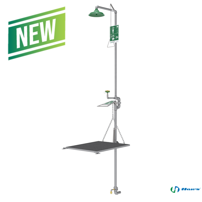 Douche combinée autoportante AXION 8350FP. Sa conception autonettoyante empêche le gel et la surchauffe de l'eau. Elle comprend une grille d'activation, une pomme de douche en plastique ABS vert, une douchette oculaire AXION et un pommeau de douche. Raccordement pour tuyauterie de 1-1/4". Idéale pour une utilisation industrielle en extérieur et dans des environnements difficiles. Catégorie EPI : non applicable.