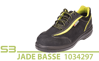 L'ensemble Jade a été spécialement développé en fonction des formes spécifiques du pied de la femme, en utilisant une semelle érgonomique. La Jade se décline en un modèle bas et un modèle haut ; tous les deux sont très légers.