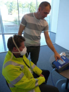 Les utilisateurs ignorent généralement qu'ils portent un masque qui n'est pas adapté à la forme de leur visage. Il se peut aussi que le masque ne soit pas correctement mis en place ou qu'il soit mal entretenu. Il faut donc contrôler le Face Fit pour vérifier si les employés sont suffisamment protégés pendant leurs activités. Car avec un masque mal ajusté, des particules non-filtrées pénètrent par la fuite. De plus, un Face Fit Test permet à l'utilisateur de s'entraîner à mettre en place correctement le masque.