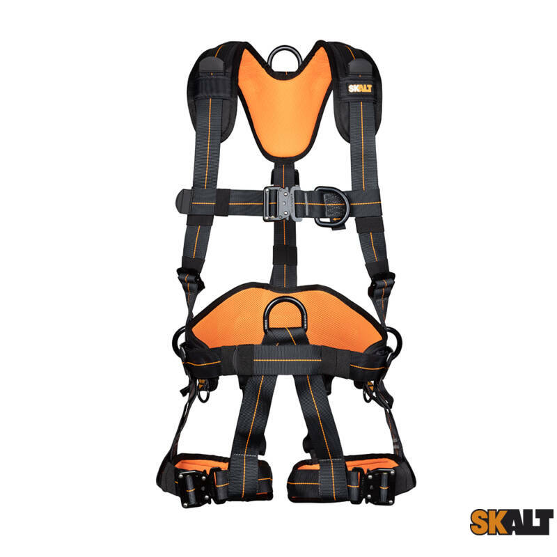 Comfortabel zitharnas met 2 bevestigingspunten: op de rug en op de borst. Zowel schouder- als beenbanden zijn verstelbaar en voorzien van een comfortverhogende polstering. Voorzien van D-ring op de buik om zittend werken uit te voeren, en af te dalen of te stijgen. deze D-ring is niet geschikt voor valopvang. Met stevige gepolsterde heupgordel voorzien van 2 positioneringsringen om handenvrij te werken. Beenbanden met snelsluitingen. Heupgordel voorzien van verschillende ringen ter bevestiging van gereedschap. Maten: S-M/L-XL.