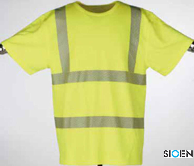 Signalisatie T-shirt - SIO-COOL®, Licht, Vochtregulerend, Sterk, Soepel, Machinewasbaar, Gelaste en gesegmenteerde reflecterende banden, Gestikte naden, Nano zilveren deeltjes, Permanent anti-bacterieel effect dat geuren bestrijdt, Buitenkant: Ronde hals, Korte mouwen, Stof: 100% Sio-cool® polyester piqué; ± 180 g/m².