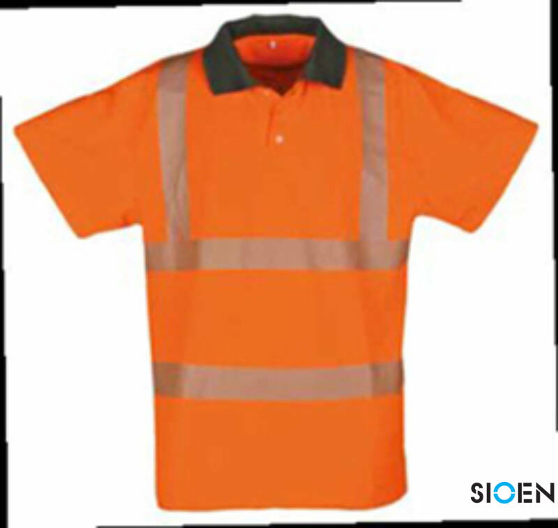 Signalisatie polo - SIO-COOL®, Licht, Vochtregulerend, Sterk, Soepel, Machinewasbaar, Gelaste en gesegmenteerde reflecterende banden, Gestikte naden, Nano zilveren deeltjes, Permanent anti-bacterieel effect dat geuren bestrijdt , Buitenkant: Omlegkraag, Knoopsluiting, Korte mouwen, Stof: 100% Sio-cool® polyester piqué; ± 180 g/m².