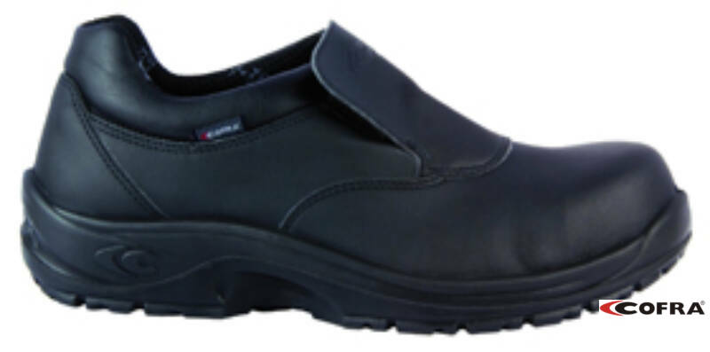 Lage schoen instapmodel in zwart microfiber met kunststof 200J neus. Voering in ademend en antibacterieel textiel. Zool in PU/PU.