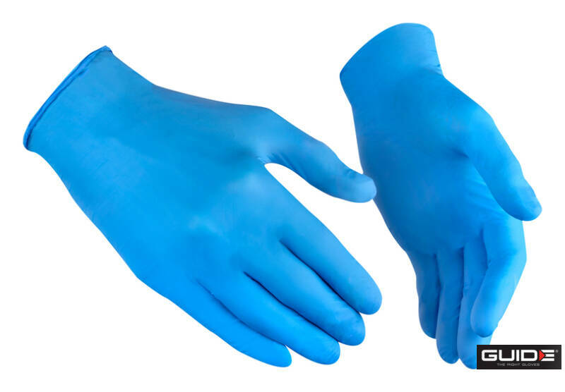 Blauwe ongepoederde handschoen uit 100% nitril. Voedingsgeschikt. Maten: S(7) tot XL(10) Lengte: 24 cm. Dikte: 0,12 mm. Verpakking: per 100 stuks. PBM cat I.