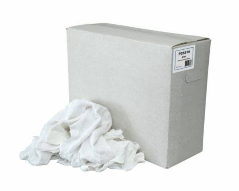 Witte tricot poetslappen met hoog absorptievermogen en hoge treksterkte. Gerecycled, pluisvrij en zacht. Doos van 10kg.