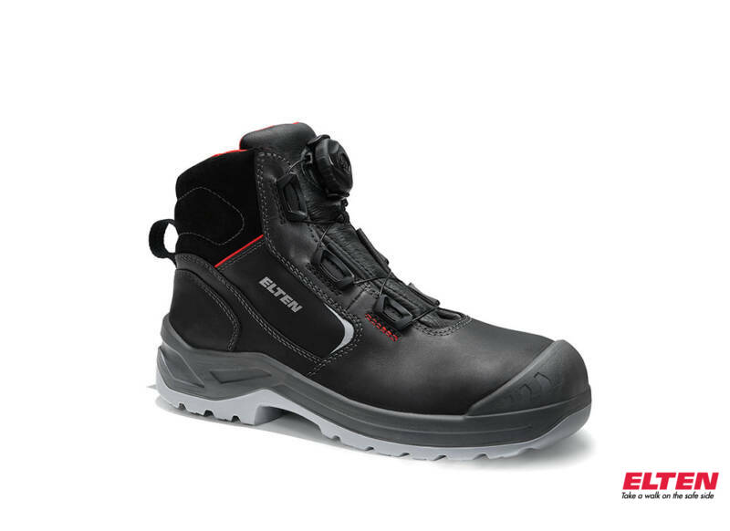 Hoge schoen in zwart waterbestendig volnerfleder, met een niet metalen antiperforatiezool en een stalen 200J neus. BOA-sluiting. Voorzien van een ademende, abrasiebestendige voering in textiel. Zool in PU/PU, SRC antislip, bestand tegen oliën en zuren. Uitneembare inlegzool in polyurethaan met textiel laag, ESD-genormeerd. Maten: 34-42.