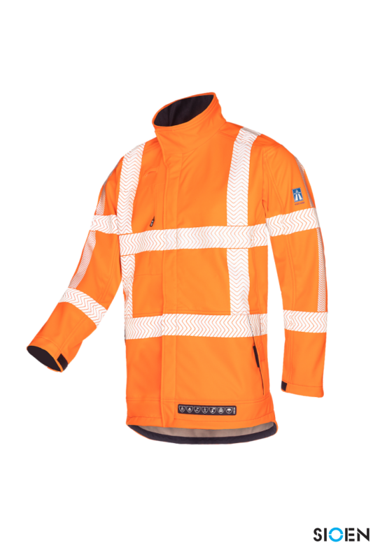 Multinorm softshell Hollum met vlamboog bescherming: Rechte kraag Ritssluiting onder klep; 1 opgezette borstzak met ritssluiting; 2 ingezette zakken; 1 lus voor gasdetector; Ronde mouwen; Mouwvernauwing door klittenbandsluiting; Elastisch trekkoord in zoom. Kwaliteit: polyester + ademend FR PU + inherent FR fleece + AST; ± 350 g / m². Beschikbare maten: S-5XL. Beschikbare kleuren: Fluo oranje. Voldoet aan: IEC 61482-2: 2018 APC1 - ATPV 24,3 cal / cm², EN ISO 11612: 2015 / A1 B1 C2 F1, EN ISO 14116: 2015 / IND.3, EN ISO 11611: 2015 / Klasse 2 - A1 , EN 1149-5: 2018, EN 13034: 2005 + A1: 2009 Type PB [6], EN ISO 20471: 2013 + A1 2016 / Klasse 3 en EN 14058: 2017 / Klasse 1 3.