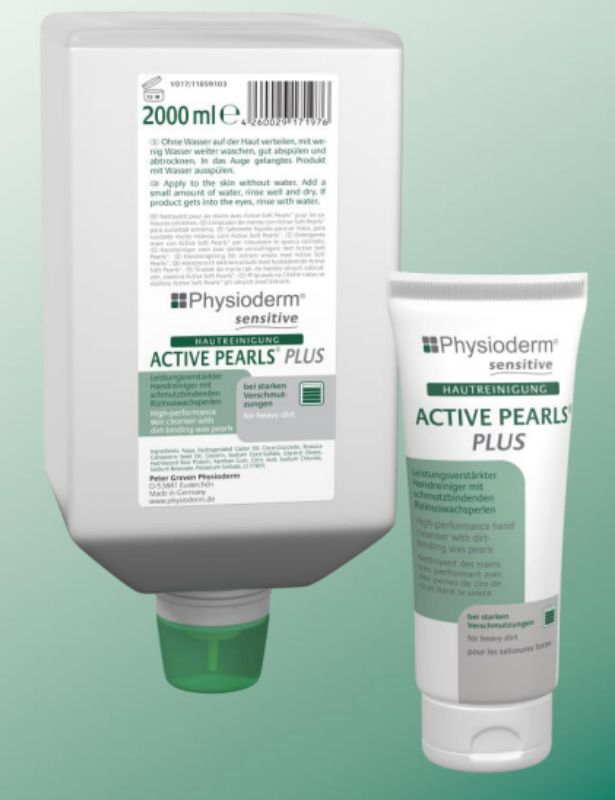Effectief versterkte handreiniger door toevoeging van vuilbindende parels van ricinewax voor bijv. olie, roet en metaalstof. dispenser: 1060646