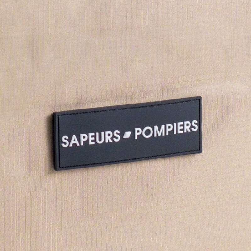 Patch voor Firefighter tassen met opschrift 'sapeurs pompiers', achterkant voorzien van klittenband.