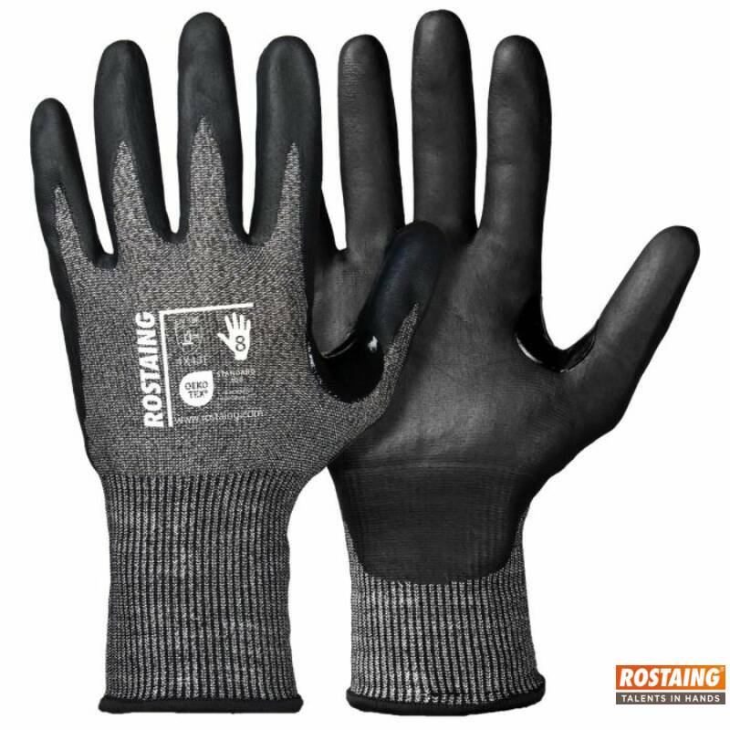 Zeer snijbestendige handschoen in zeer fijn breisel, 0,85 mm. 18 gauge. Coating in soft nitril. Touchscreen op alle vingers. Versterkte duimholte.