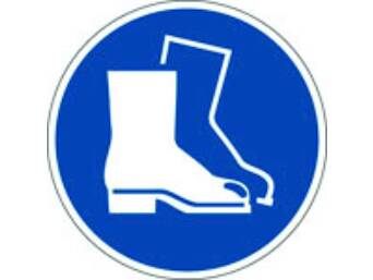 Gebodspictogram - Veiligheidsschoenen verplicht in polypropyleen. Afmeting diameter: 200mm. Geen PBM.