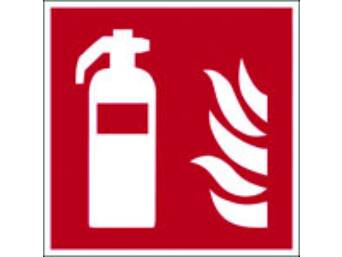 Pictogram voor Brandbestrijding - Blusapparaat in polypropyleen . Afmeting: 148X148mm. Geen PBM.