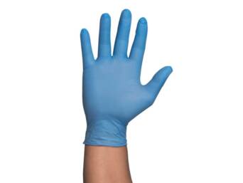 Stevige blauwe wegwerphandschoen in 100% nitril met gerolde boord. Volledig poedervrij en vrij van natuurrubber. Met reliëf op de vingers. Voedingsgeschikt. Geschikt voor medisch onderzoek. Duurzaam verpakt.